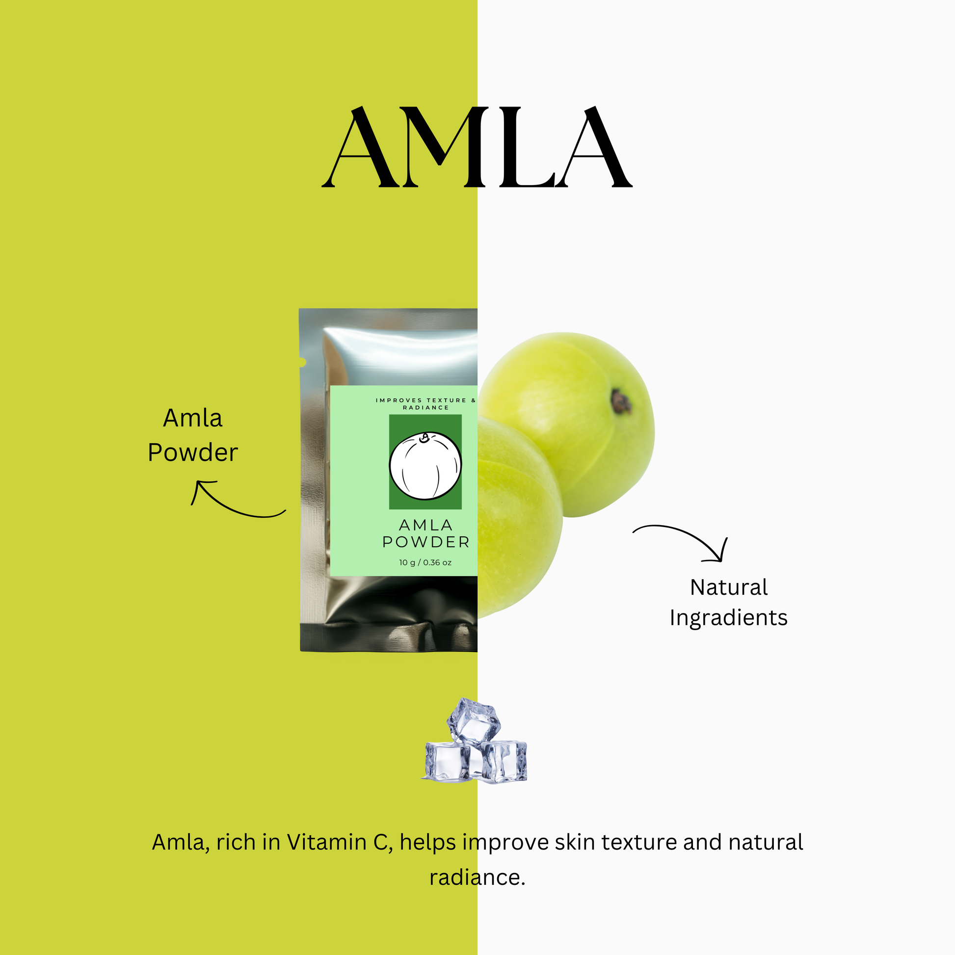 Mix one sachet (10g) with ~100 ml purified water, stir well until dissolved, freeze in an ice roller or ice tray, and apply gently on the face in circular motions for 5–10 minutes (40–50 seconds per area).